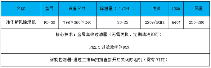管道式新風(fēng)凈化除濕機(jī)技術(shù)參數(shù)